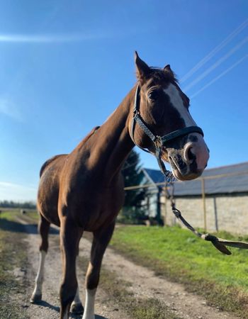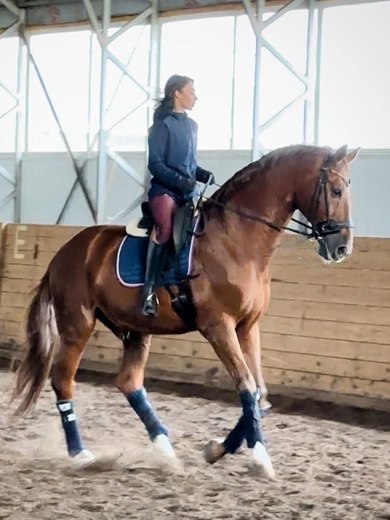Характер: Лошадь для любого всадника. Очень нежная и приятная кобыла как в общении так и в работе. Уважает всадника и требует уваженения к себе.