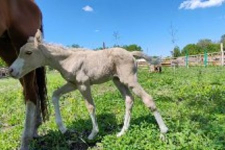 Характер: В перспективе лошадь для любого всадника. Очень нежная и приятная кобылка в общении. Уважает человека но требует уваженения и к себе, быстро всему учится, очень любознательная, как и большенство малышей в ее возрасте.